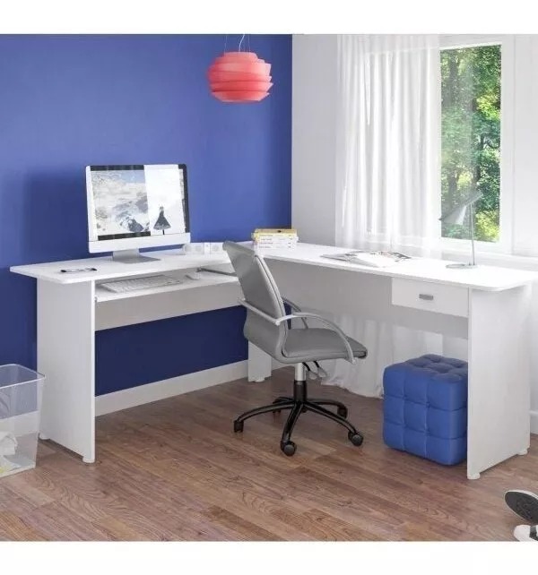 – Mesa em L, ideal para cantos e otimização do espaço;