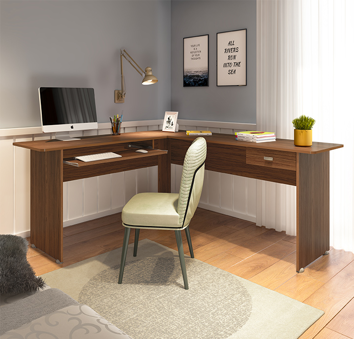 – Mesa em L, ideal para cantos e otimização do espaço;