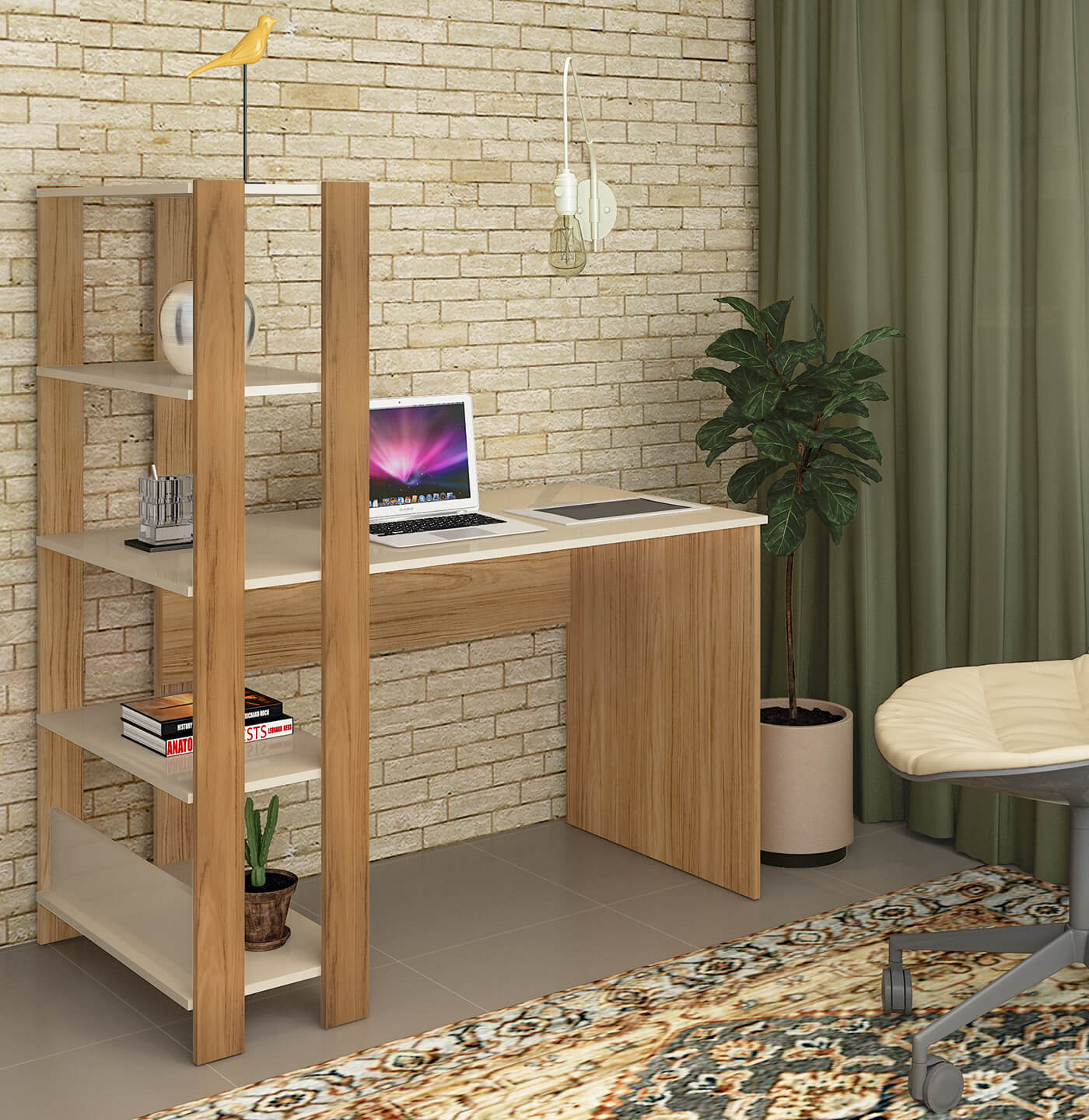 Destaque em quarto, sala ou home office, a Escrivaninha Match tem design industrial e detalhes sofisticados que conferem um visual contemporâneo aos ambientes. Seu amplo tampo oferece um espaço confortável para você trabalhar ou estudar de maneira produtiva e agradável. As prateleiras acopladas proporcionam a grande vantagem deste produto: você pode ter seus livros, materiais e tudo o que precisa à mão, no mesmo móvel! Assim, você tem muito mais praticidade no seu dia a dia e melhor desempenho no trabalho!