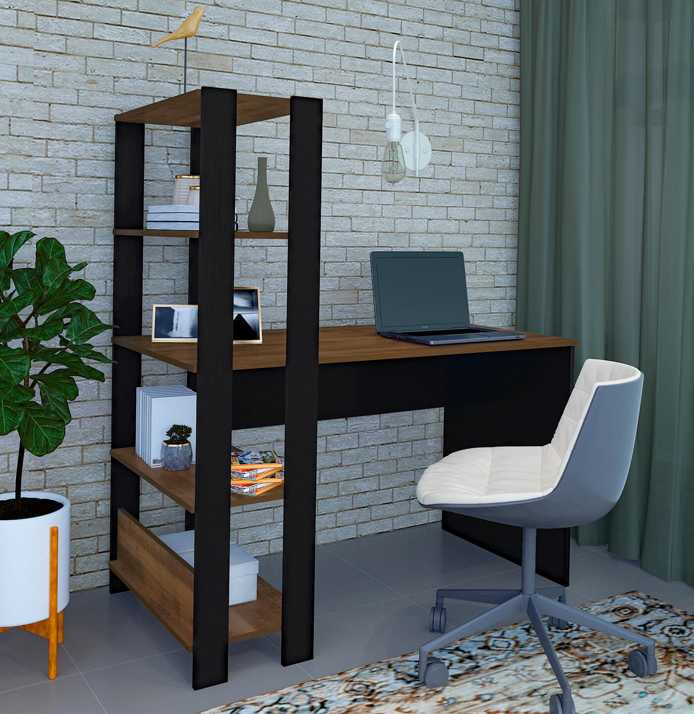 Destaque em quarto, sala ou home office, a Escrivaninha Match tem design industrial e detalhes sofisticados que conferem um visual contemporâneo aos ambientes. Seu amplo tampo oferece um espaço confortável para você trabalhar ou estudar de maneira produtiva e agradável. As prateleiras acopladas proporcionam a grande vantagem deste produto: você pode ter seus livros, materiais e tudo o que precisa à mão, no mesmo móvel! Assim, você tem muito mais praticidade no seu dia a dia e melhor desempenho no trabalho!