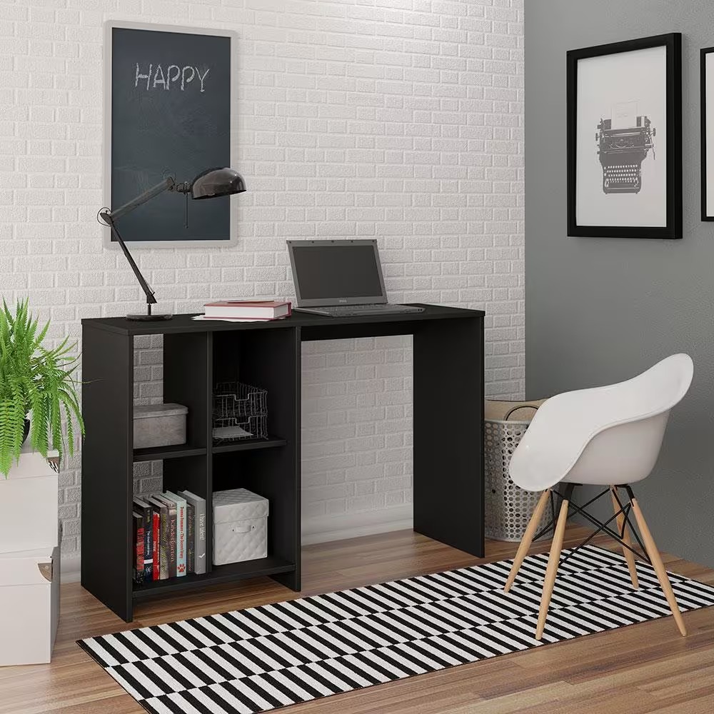 Seu momento de estudo ou trabalho será muito mais agradável com a bela escrivaninha Matrix, projetada com traços lineares, que deixam o ambiente moderno e elegante! Com uma ampla superfície de trabalho e 4 nichos, este móvel é ideal para utilizar seu notebook de forma confortável e com muito espaço para seus materiais. Os nichos são perfeitos para guardar livros, pastas e materiais do dia a dia, para que você estude de forma prática e descomplicada, organizando e aproveitando melhor o espaço do seu quarto ou escritório!