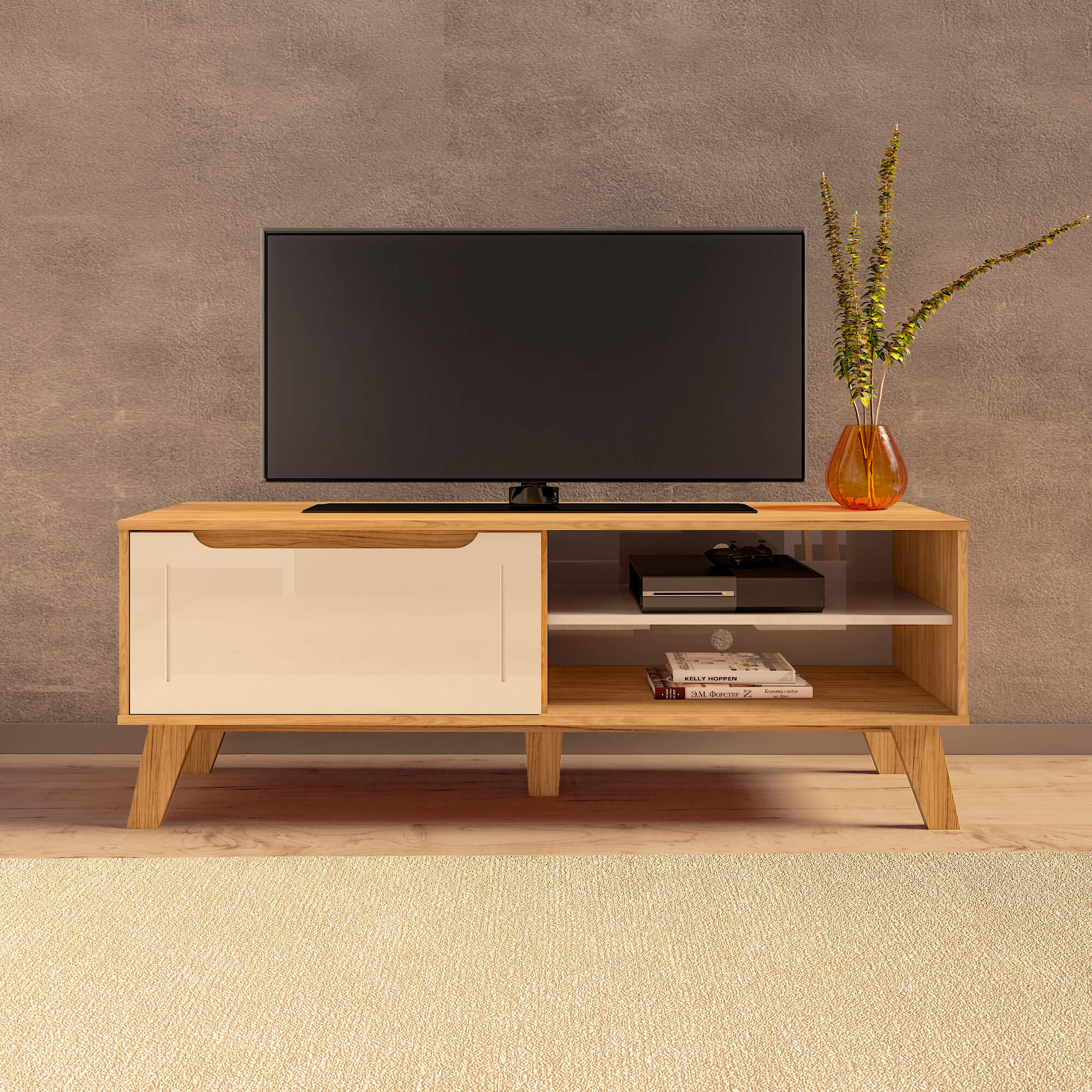 – O acabamento madeirado do móvel é feito em pintura UV texturizada, e o Off White é feito em pintura UV alto brilho, ambos de longa durabilidade e fácil limpeza.